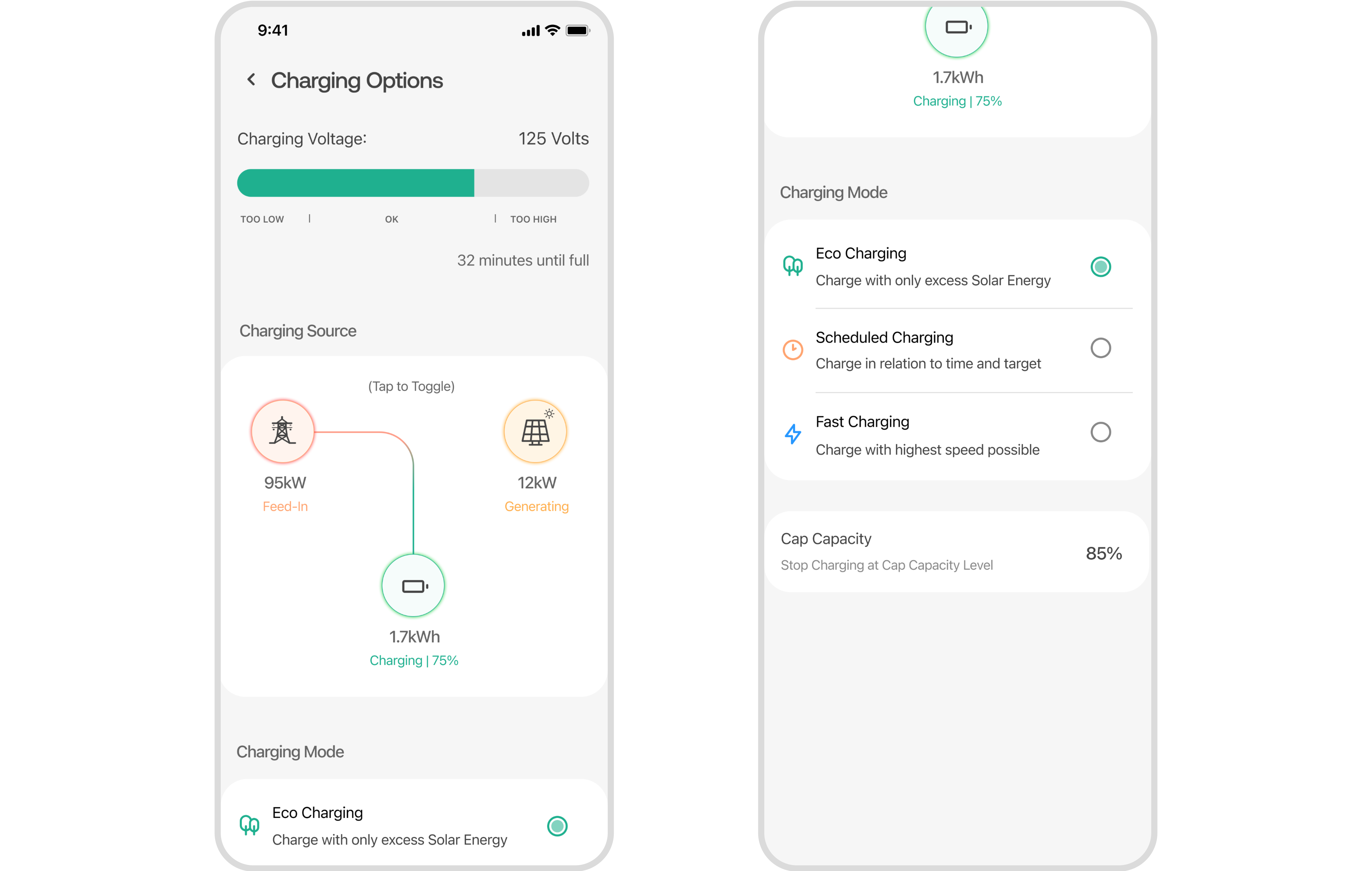 The charging mode feature allows users to select different charging modes for their devices, such as scheduled charging mode, energy-saving mode, and high-performance mode. Selecting a specific mode can optimize the energy production based on the user's needs.